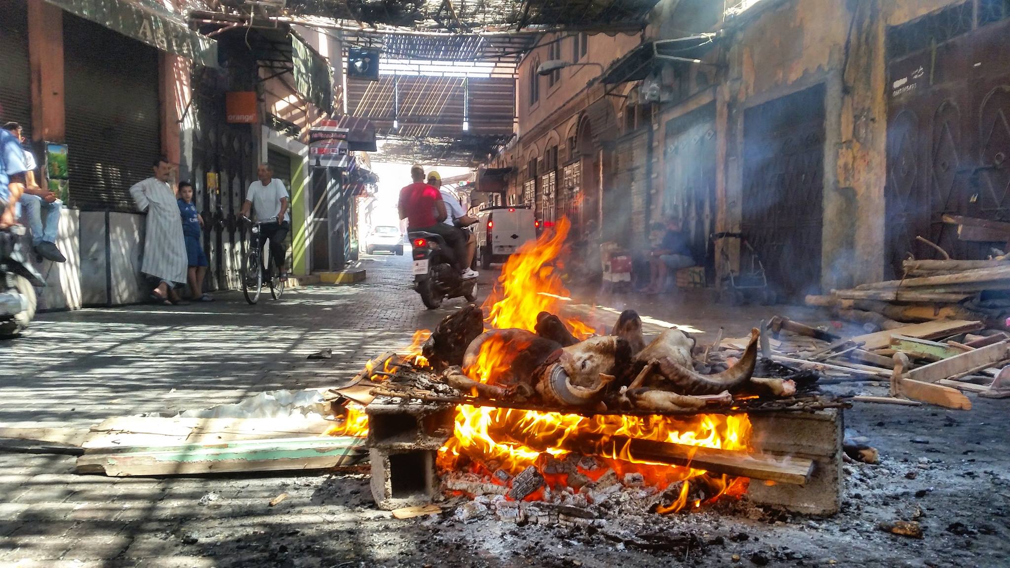 Anul acesta musulmanii au sarbatorit Eid al-Adha in 1 septembrie. Cu aceasta ocazie fiecare familie sacrifica cate un berbec, in strada. Mai sus, capete decapitate (sic) arzand.